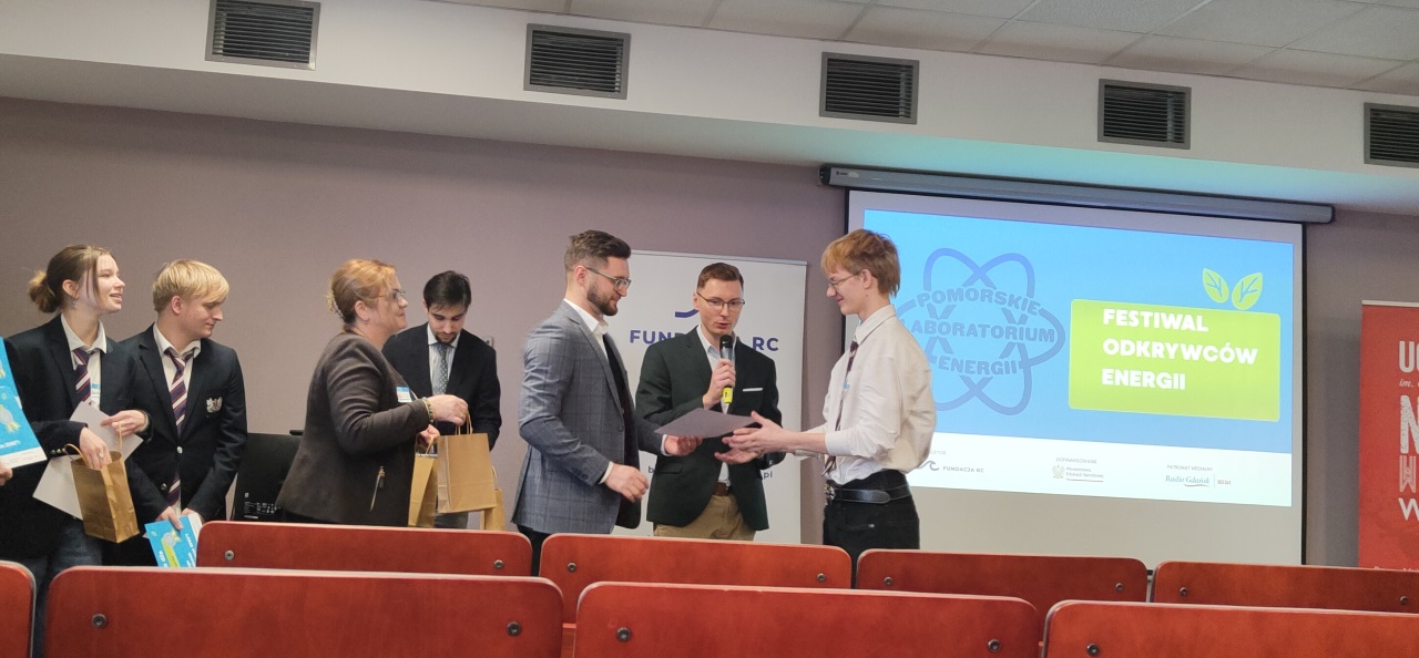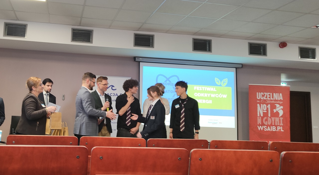 W dniu 11 grudnia 2025 w ramach projektu „Pomorskie Laboratorium Energii. Zrozumieć transformację energetyczną” uczniowie naszej szkoły zostali zaproszeni do udziału w wydarzeniu „Festiwal Odkrywców Energii” . Festiwal miał miejsce Wyższej Szkole Administracji i Biznesu w Gdynii . Jeg o celem było ogłoszenie zwycięzców Hackathonu oraz przybliżenie uczniom 10 pomorskich szkół wyzwań i szans związanych z transformacją energetyczną, rozwojem nowoczesnych technologii oraz roli województwa pomorskiego w tym procesie .