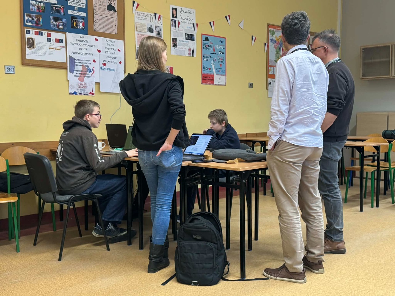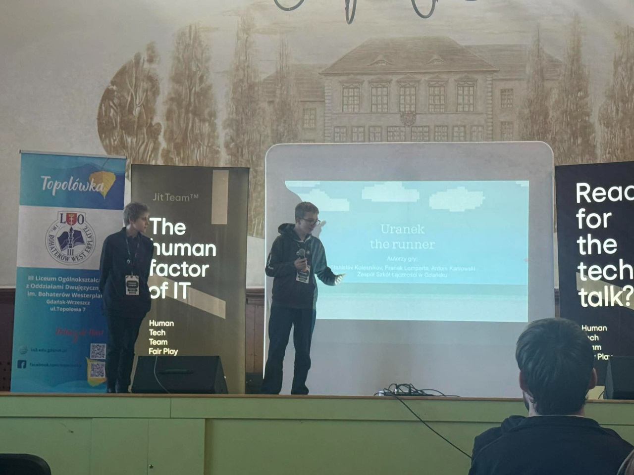 🎉 Z radością ogłaszamy, że uczniowie klasy 1b Antoni Kaniowski, Stanislav Kolesnikov i Franciszek Lomperta zdobyli wyróżnienie w hackathonie HackTheTopo 🖥️🏆 organizowanym przez III Liceum Ogólnokształcące w Gdańsku.