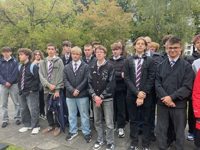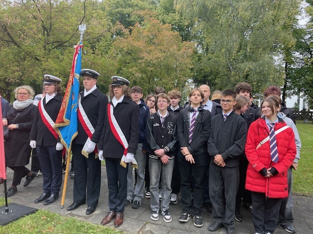W wydarzeniu uczestniczyli uczniowie klasy 3b wraz z wychowawczynią panią Izabelą Zin oraz poczet sztandarowy Zespołu Szkół Łączności pod opieką pani Marzeny Kucharczyk.