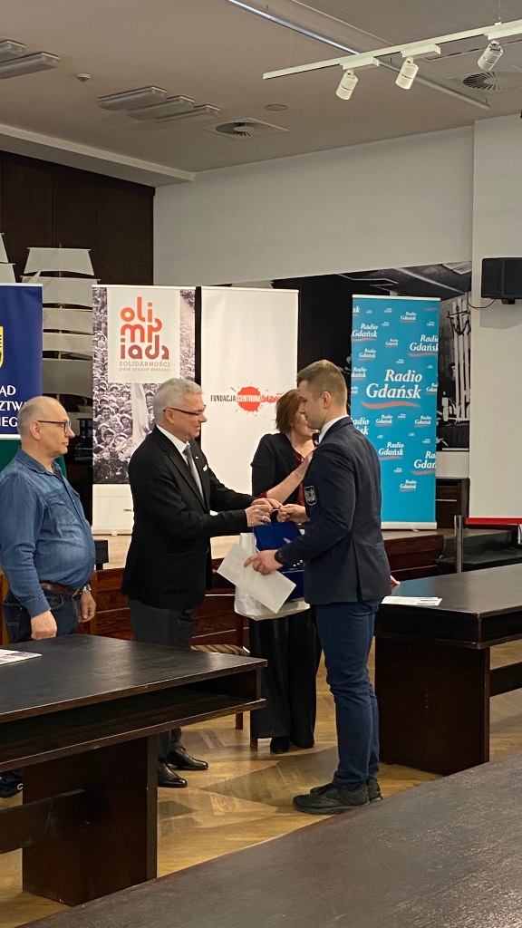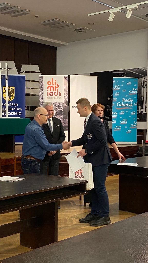 Dnia 12 marca w Gdańsku, w Sali BHP, odbył się Etap Wojewódzki XI edycji konkursu „Olimpiada Solidarności. Dwie dekady historii” . Test obejmował wiedzę na temat historii Polski w latach 1970-1990, skierowany był do uczniów szkół ponadpodstawowych. Naszą szkołę godnie reprezentowali: Maciej Niziołek z klasy IV B oraz Bartłomiej Warda z klasy V B. Z ogromną radością informujemy, że Bartłomiej Warda zajął pierwsze miejsce i zakwalifikował się do finału. Dziękujemy uczniom za zaangażowanie, gratulujemy i życzymy dalszych sukcesów!