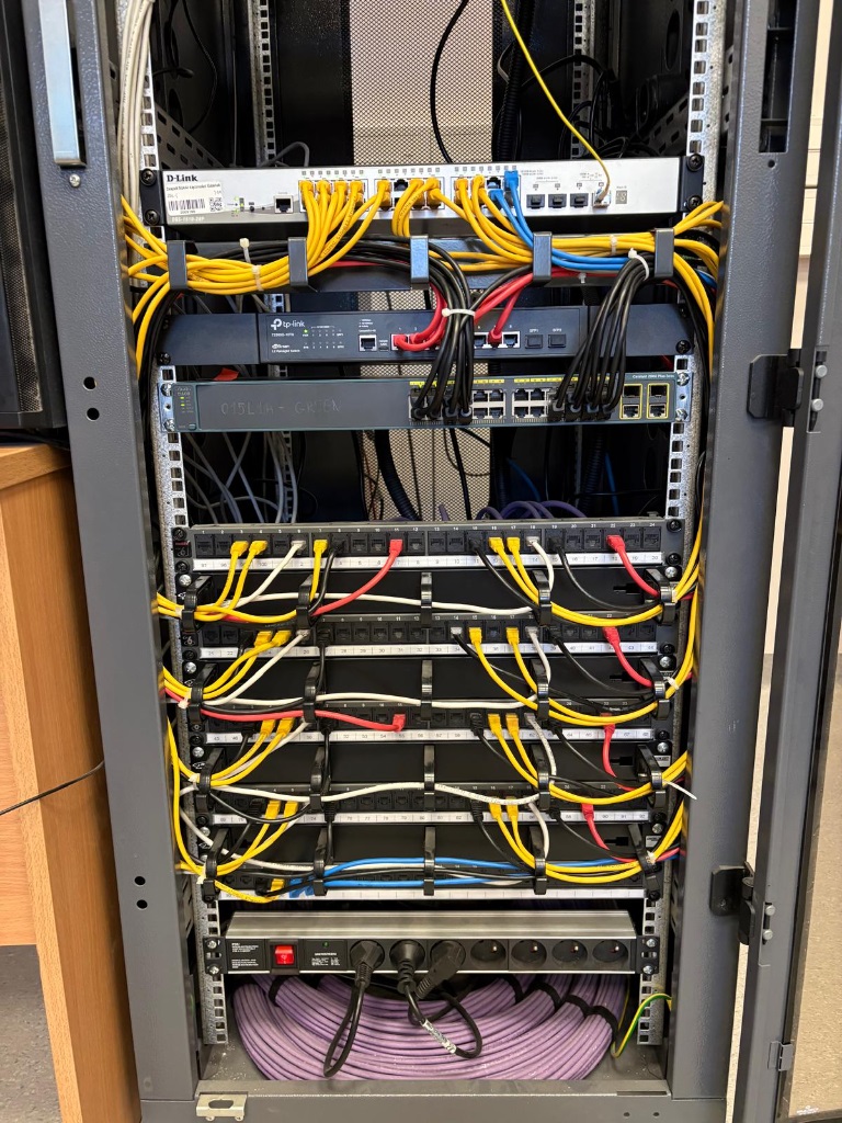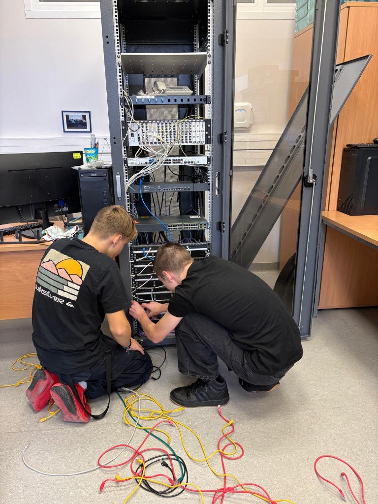 Uczniowie z klasy 3H podczas praktyki zawodowej uporządkowali okablowanie w szafach RACK w salach 147B i 148B. Wykazali się dużym zmysłem organizacyjnym, starannością w planowaniu i dokładnością. Umiejętności na pewno przydadzą się im podczas przyszłej pracy zawodowej.