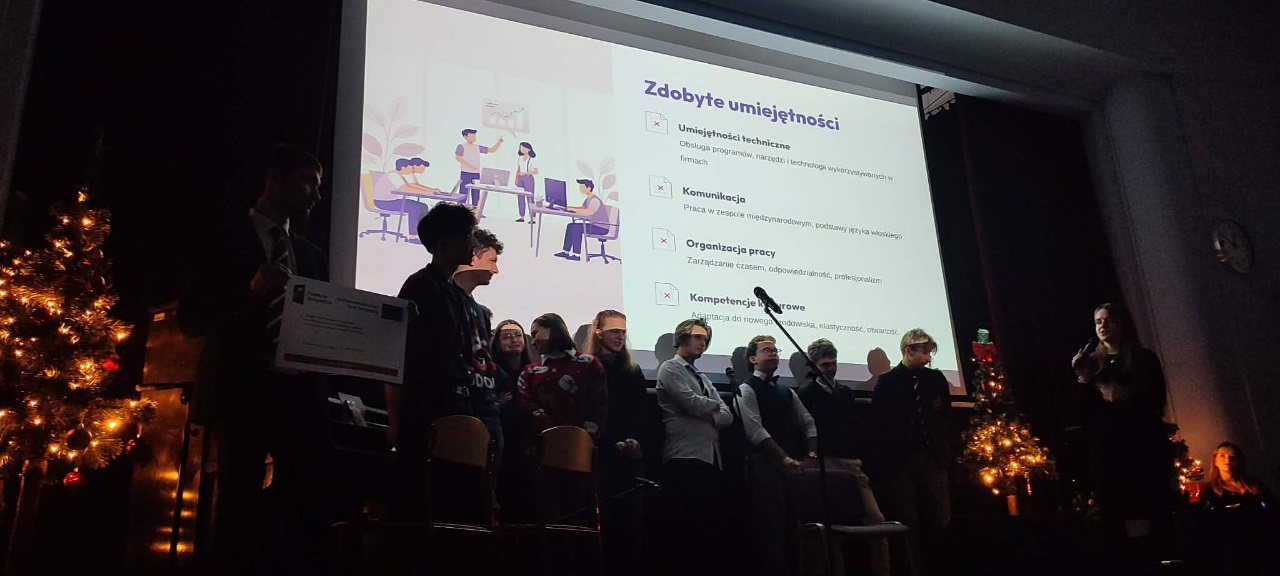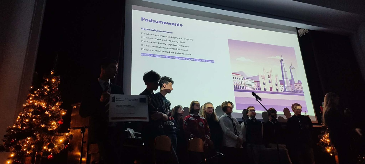 19 grudnia, podczas Rady Pedagogicznej oraz koncertu świątecznego, uczestnicy projektu – zarówno uczniowie, jak i nauczyciele – dzielili się swoimi doświadczeniami i opowiadali o korzyściach płynących z udziału w mobilności. Nie zabrakło również okazji do spróbowania smakołyków typowych dla Mediolanu i kuchni włoskiej.