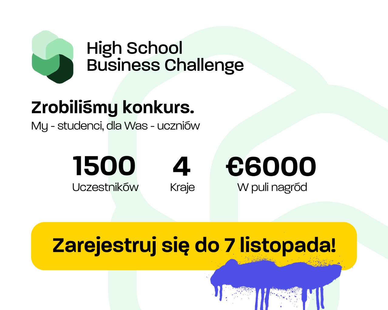 Informujemy, że wystartowała X edycja High School Business Challenge - największego konkursu biznesowego dla uczniów szkół średnich w Europie Środkowo-Wschodniej. Zapisy trwają jeszcze tylko do 7 listopada!